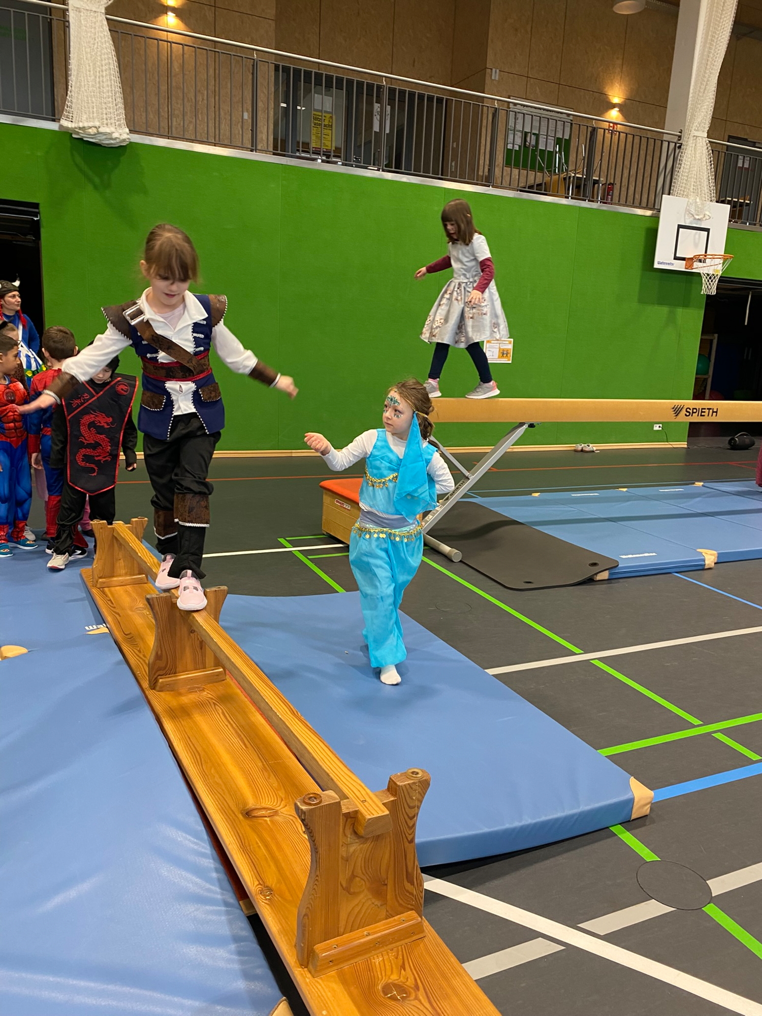 Passend zum diesjährigen Faschingsumzug wurde außerdem eine thematisch abgestimmte Station vorbereitet, die das aktuelle Motto aufgriff und die Turnhalle noch einmal in eine ganz besondere Atmosphäre verwandelte.