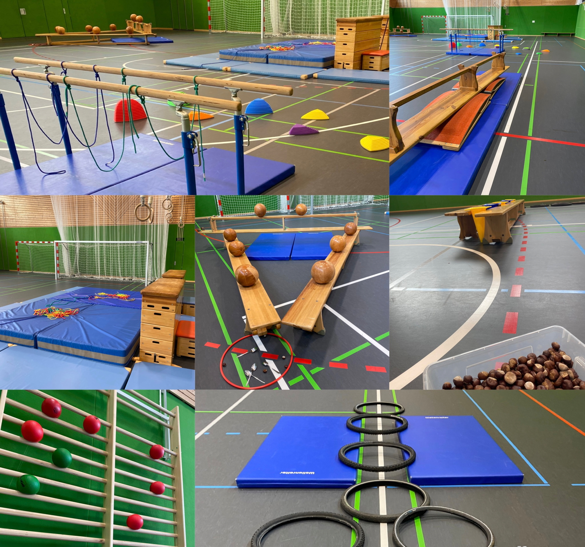 Unsere Sportlehrkräfte Frau Pia Liegl und Frau Stefanie Riederer bauten in der Turnhalle für die gesamte Schule eine abwechslungsreiche Bewegungslandschaft zum Thema Herbst auf. Mit viel Freude und Fantasie durften die Schüler verschiedene herbstliche Stationen meistern.