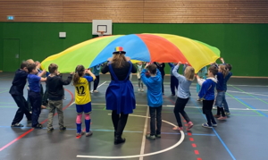 Wegen einer kurzfristigen Glatteiswarnung musste der geplante Sporttag leider abgesagt werden – doch den Spaß ließen wir uns nicht nehmen! In der Turnhalle erlebten die Kinder abwechslungsreiche Stationen: Eishockey, Skispringen, alpine Abfahrt, „Park and Pipe“ und vieles mehr. Und der Schnee? Den zauberten wir uns einfach in unserer Fantasie.