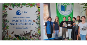 Im Mai beteiligte sich unsere 4. Klasse an der Sammelaktion für den Naturschutz. Mit großem Einsatz sammelten die Schülerinnen und Schüler Spenden zugunsten des Landesbundes für Vogelschutz (LBV). Als Anerkennung überreichte Frau Kerner vom LBV der Klasse eine Plakette – ein Zeichen des Dankes und der Wertschätzung (siehe Bild links).