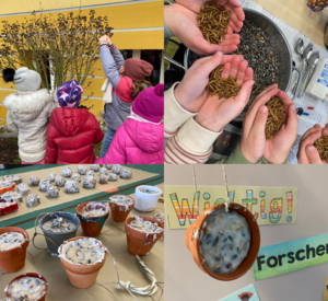 In der kalten Jahreszeit ist es besonders sinnvoll, heimische Vögel mit Futter zu unterstützen. Mit viel Freude stellte die 1. Klasse passendes Vogelfutter für verschiedenen Arten her – darunter auch echte Delikatessen mit Körnern, Rosinen und sogar Mehlwürmern. Die fertigen Futterstellen wurden anschließend auf dem Schulhof verteilt.