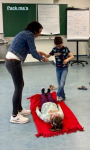 Die Kinder versuchten im Eisregel-Training aus einem „Eisloch“ aus Turnkästen zu klettern. Gar nicht so einfach, weiß die Retterin der DLRG. „Bei dieser Übung merken die Kinder, dass es fast unmöglich ist, alleine aus dem eingebrochenen Eis zu klettern, selbst wenn die Übung hier im Warmen und mit trockener Kleidung stattfindet.“ Weil es schwer ist, sich selbst aus dem eingebrochenen Eis zu befreien, erlernten die Kinder Elemente der Fremdrettung – ohne selbst in Gefahr zu geraten.