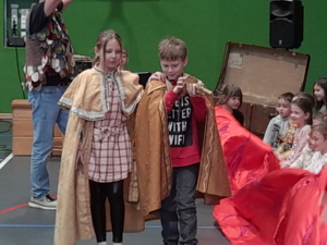 Ein ganz besonderes Erlebnis: Unsere Schulkinder durften nicht nur zuschauen, sondern auch aktiv auf und hinter der Bühne mitwirken. Mit viel Begeisterung sangen, spielten und unterstützten sie die Profidarsteller und erlebten dabei hautnah, was Musiktheater bedeutet.